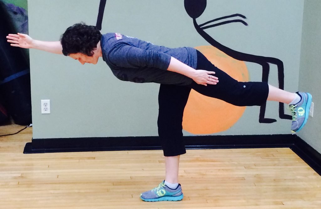 Usually, the action of clenching a fist with the outstretched hand and extending the toe of the raised leg is surprisingly helpful in activating muscles and improving balance.